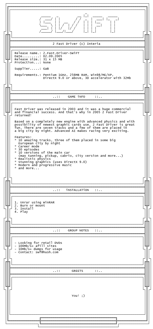 Release Name : 2.Fast.Driver-SWiFT