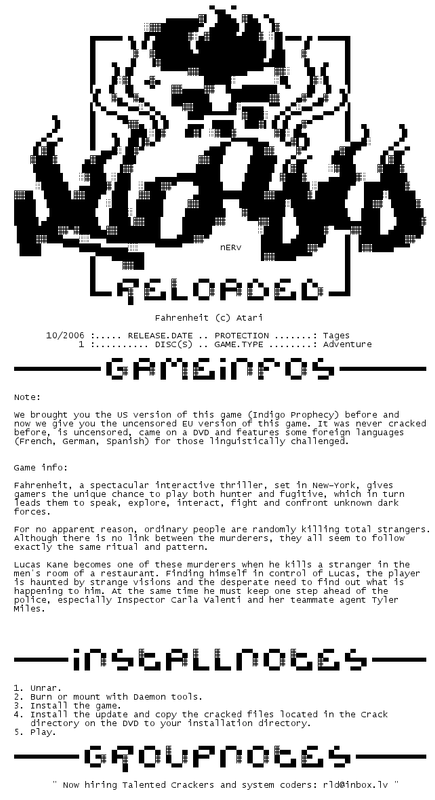 Release Name : Fahrenheit-RELOADED