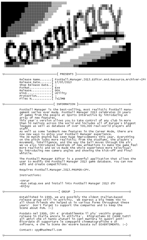 Release Name : Football.Manager.2013.Editor.And.Resource.Archiver-CPY