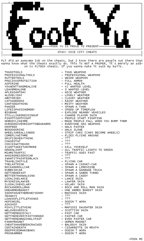 Grand Theft Auto 3 Vice City CHEATS READ NFO-FOOKYU