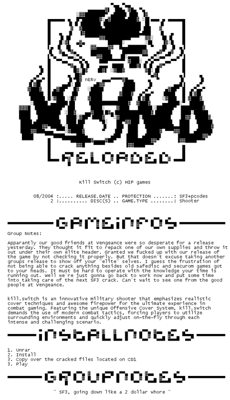 Summary : Kill Switch is a third-person shooter video game developed by Namco USA in 2003 for the PlayStation 2, Xbox and Microsoft Windows. A Game Boy Advance port was released in 2004. The GBA port was created independently of Namco, due to a licensing deal with Destination Software.