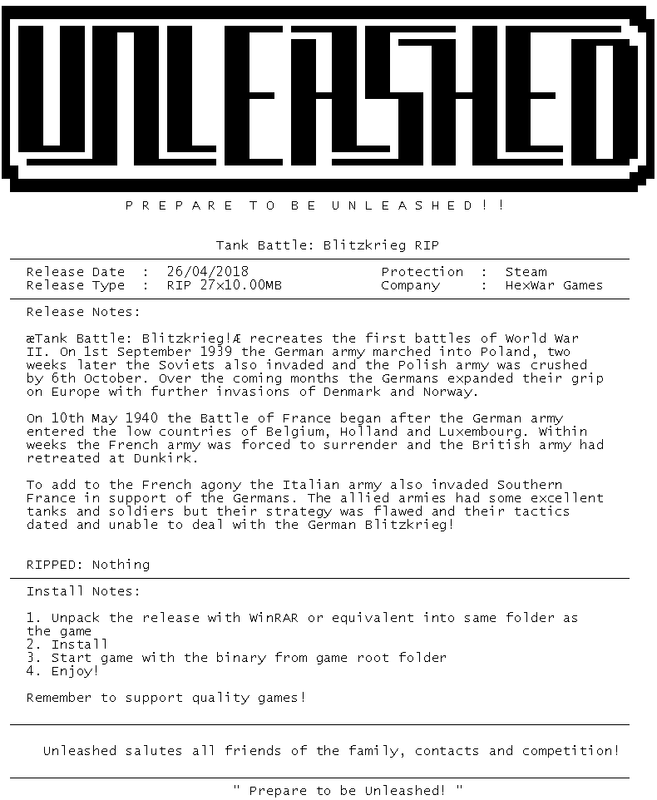 Release Name : Tank.Battle.Blitzkrieg.RIP-Unleashed