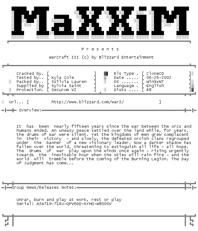 Release Name : WarCraft.III.CloneCD-MaXXiM