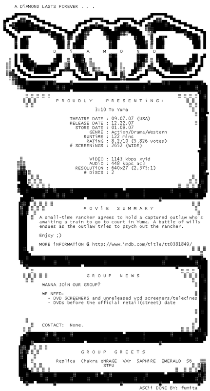 Release Name : 3.10.To.Yuma.2007.DVDRip.XviD-DiAMOND