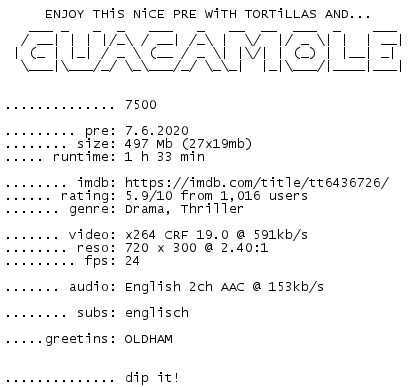 https://rapidgator.net/file/ff30484967dd7a9ad6f570d9d79039f3/7500.2019.BDRiP.x264-GUACAMOLE.rar.html