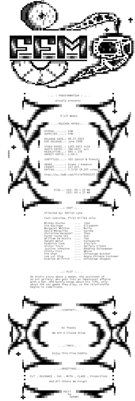 Release Name : 9-1.2.Weeks.1986.DVDRip.XviD.AC3.iNTERNAL-FFM
