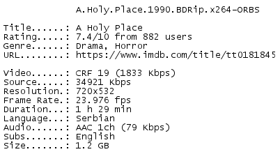 Release Name : A.Holy.Place.1990.BDRip.x264-ORBS