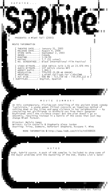 Release Name : A.Miami.Tail.2003.DVDRip.XviD-SAPHiRE