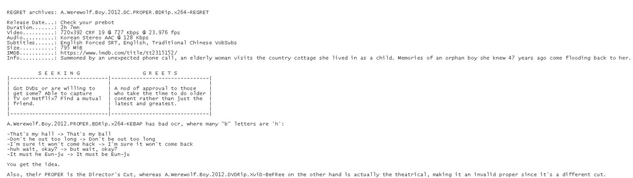 - A Werewolf Boy 2012 THEATRiCAL PROPER BDRip x264-REGRET