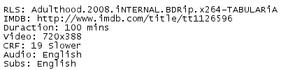 Release Name : Adulthood.2008.iNTERNAL.BDRip.x264-TABULARiA