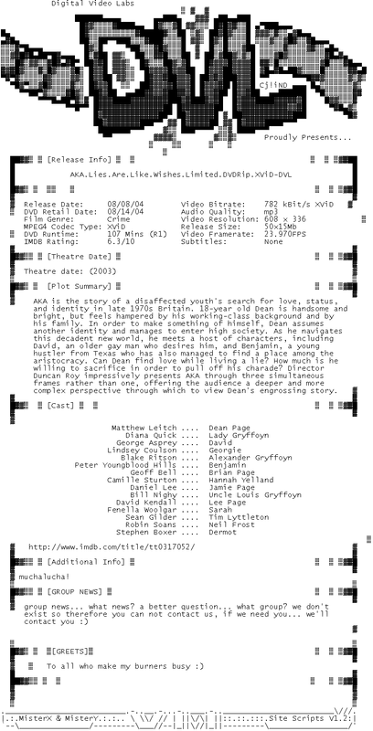 Release Name : AKA.Lies.Are.Like.Wishes.2002.Limited.DVDRip.XViD-DVL