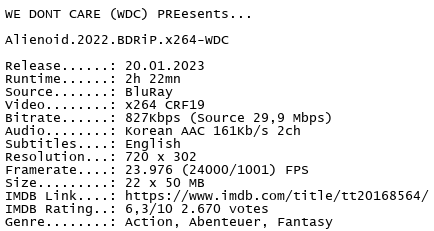 Release Name : Alienoid.2022.BDRiP.x264-WDC