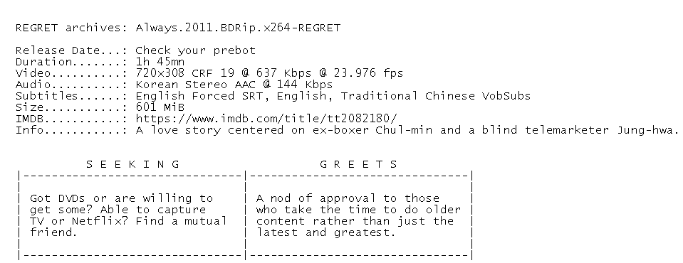 Release Name : Always.2011.BDRip.x264-REGRET