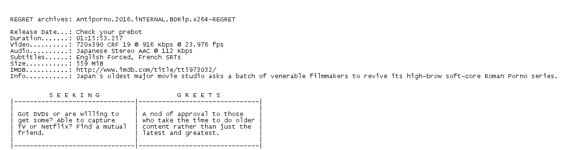 Release Name : Antiporno.2016.iNTERNAL.BDRip.x264-REGRET