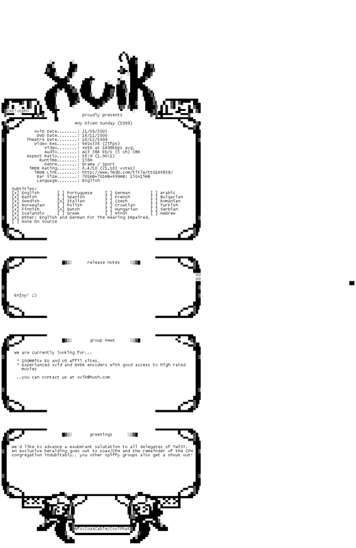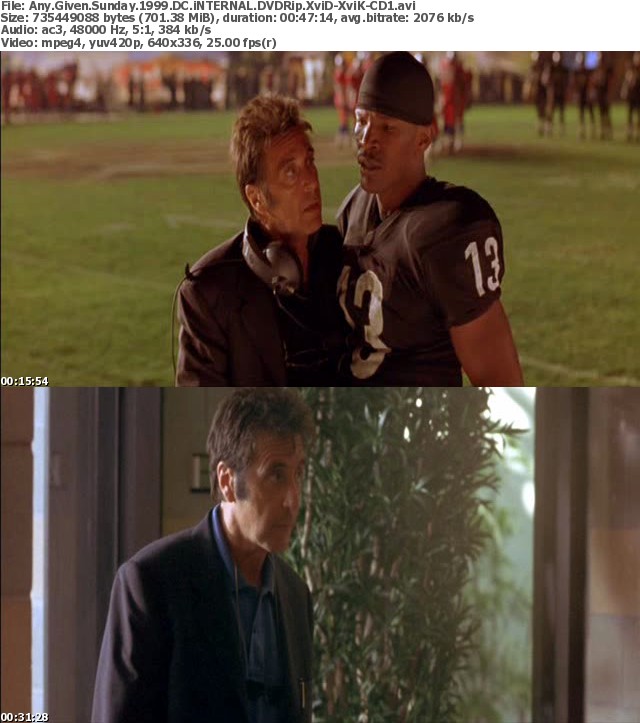 Release Name : Any.Given.Sunday.1999.DC.iNTERNAL.DVDRip.XviD-XviK