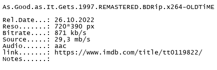 Release Name : As.Good.as.It.Gets.1997.REMASTERED.BDRip.x264-OLDTiME