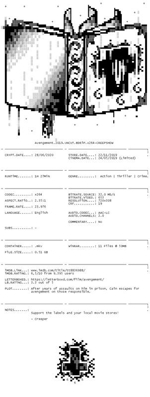 Release Name : Avengement.2019.UNCUT.BDRiP.x264-CREEPSHOW