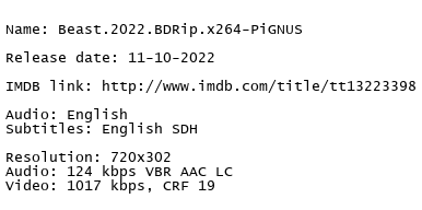 Release Name : Beast.2022.BDRip.x264-PiGNUS