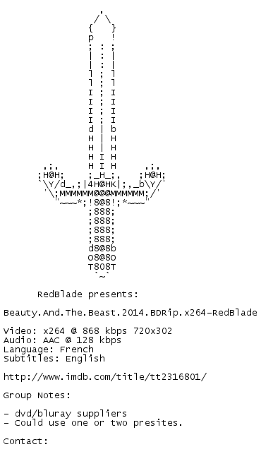 Release Name : Beauty.And.The.Beast.2014.BDRip.x264-RedBlade