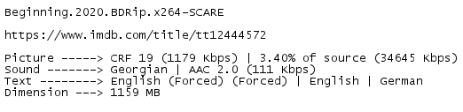 Release Name : Beginning.2020.BDRip.x264-SCARE