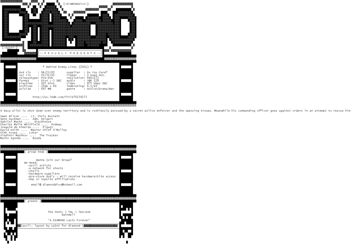 Release Name : Behind.Enemy.Lines.2001.DVDRip.DivX-DiAMOND