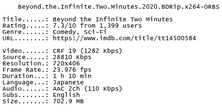 https://www.filefactory.com/file/51d28727cpri/Beyond.the.Infinite.Two.Minutes.2020.BDRip.x264-ORBS.rar