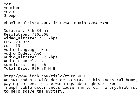 Release Name : Bhool.Bhulaiyaa.2007.iNTERNAL.BDRip.x264-YAMG