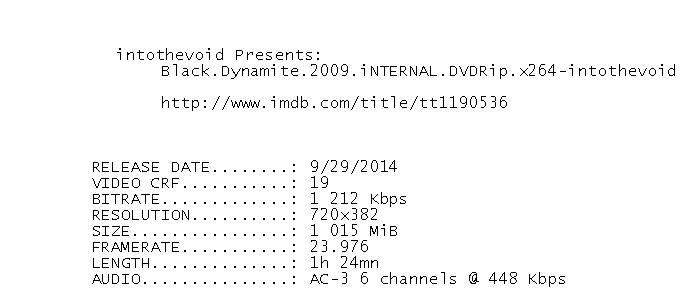 Release Name : Black.Dynamite.2009.iNTERNAL.DVDRip.x264-intothevoid