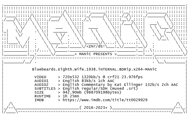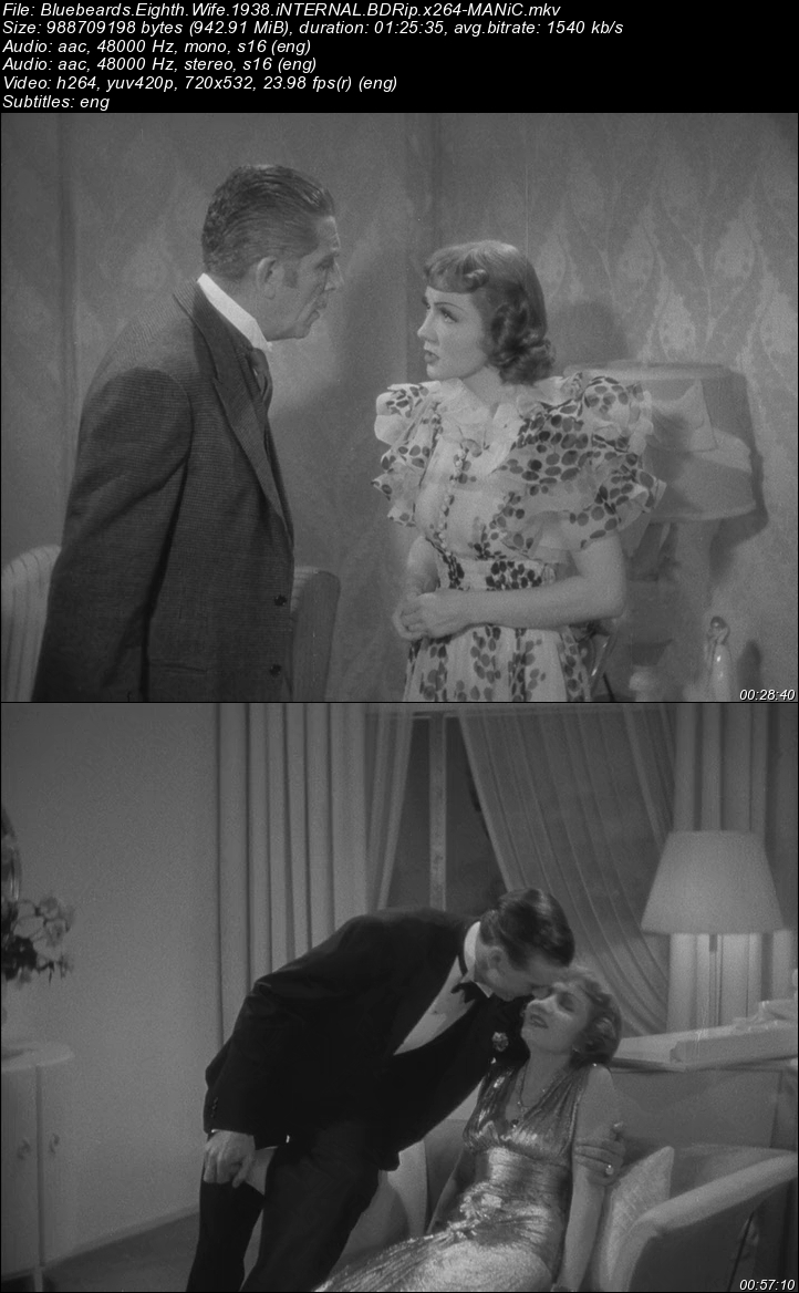 Release Name : Bluebeards.Eighth.Wife.1938.iNTERNAL.BDRip.x264-MANiC
