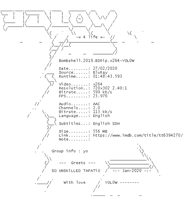 Release Name : Bombshell.2019.BDRip.x264-YOL0W
