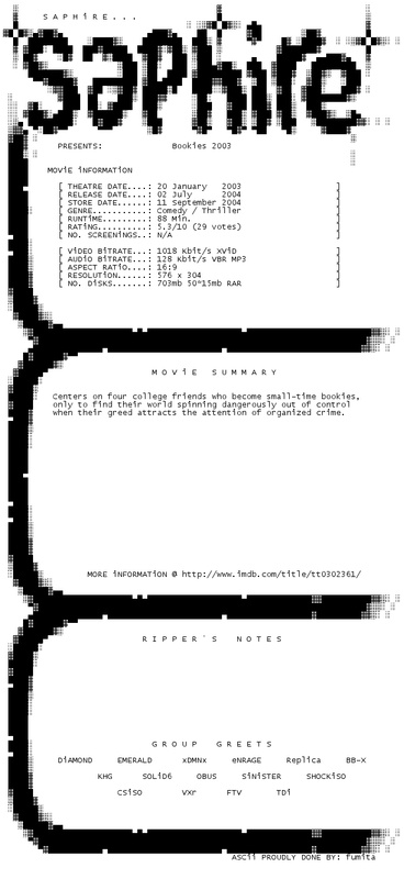 Release Name : Bookies.2003.DVDRip.XViD-SAPHiRE