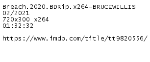 Release Name : Breach.2020.BDRip.x264-BRUCEWILLIS