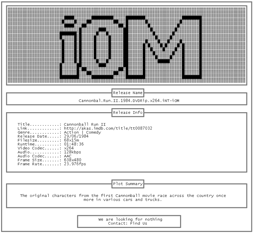 Release Name : Cannonbal.Run.II.1984.DVDRip.x264.iNT-iOM