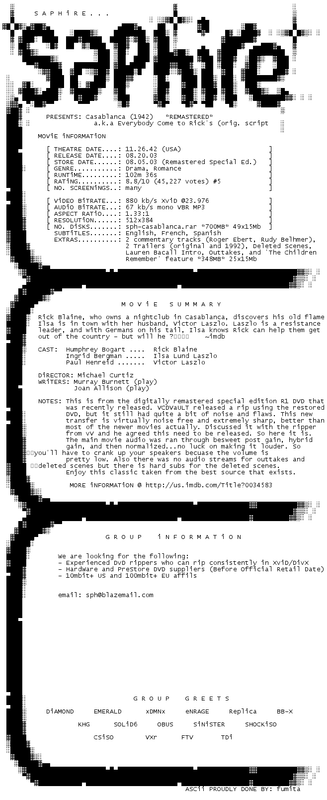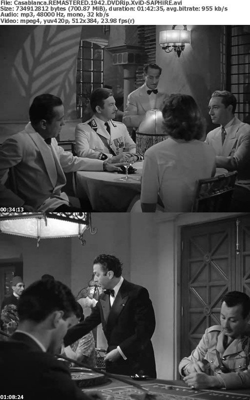 Release Name : Casablanca.REMASTERED.1942.DVDRip.XviD-SAPHiRE
