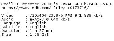 Release Name : Cecil.B.Demented.2000.iNTERNAL.WEB.h264-ELEVATE