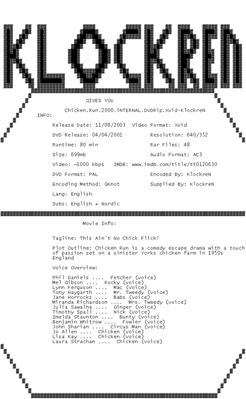 Release Name : Chicken.Run.2000.iNTERNAL.DVDRip.Xvid-KlockreN