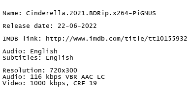 Release Name : Cinderella.2021.BDRip.x264-PiGNUS