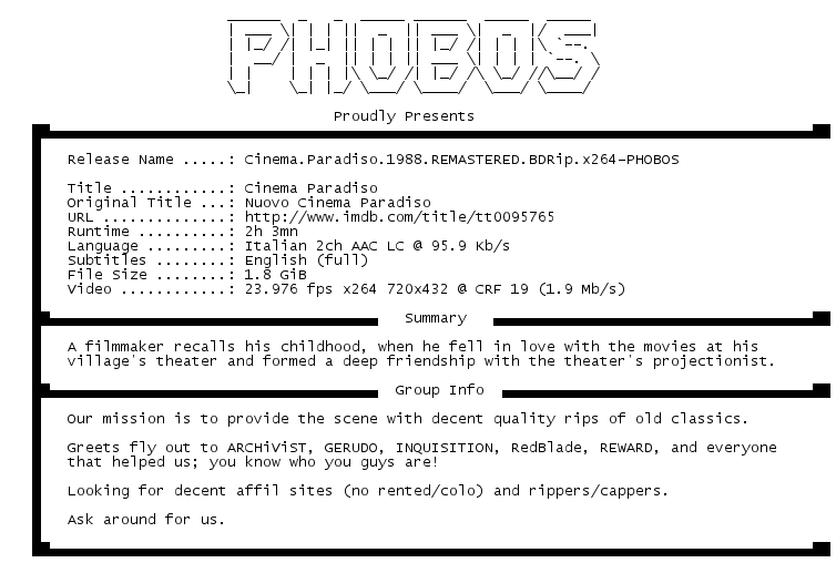 Release Name : Cinema.Paradiso.1988.REMASTERED.BDRip.x264-PHOBOS
