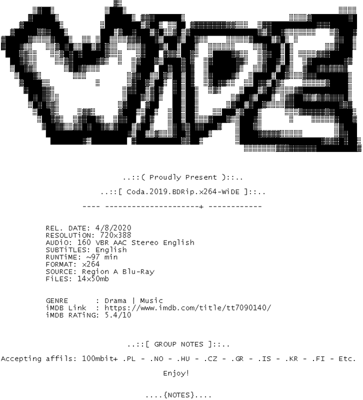 Release Name : Coda.2019.BDRip.x264-WiDE