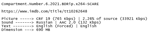 https://rapidgator.net/file/692c7e4fa35a92e3987ead5d5b4dcd8a/Compartment.Number.6.2021.BDRip.x264-SCARE.rar.html