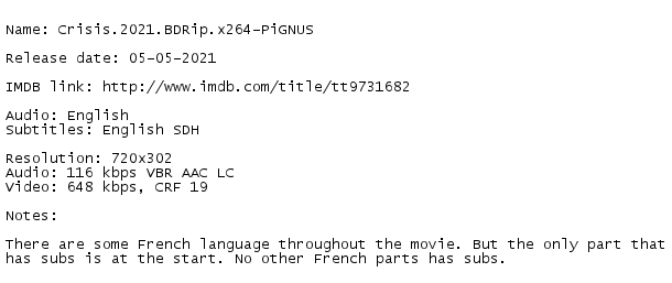 Release Name : Crisis.2021.BDRip.x264-PiGNUS
