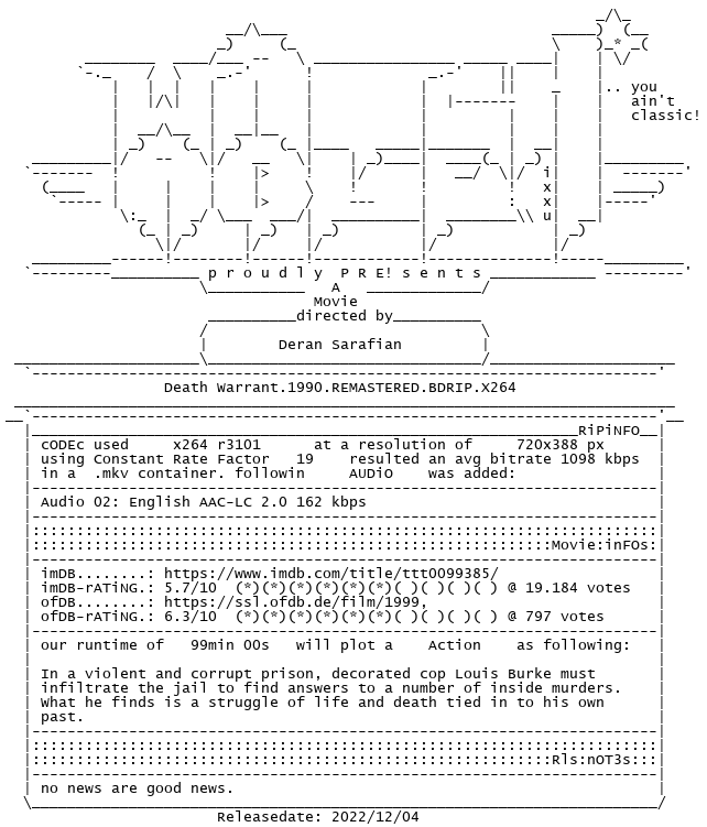Release Name : Death.Warrant.1990.REMASTERED.BDRIP.X264-WATCHABLE