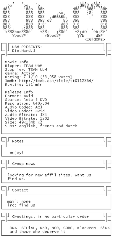 Release Name : Die.Hard.3.1995.INTERNAL.DVDRIP.XVID-UbM