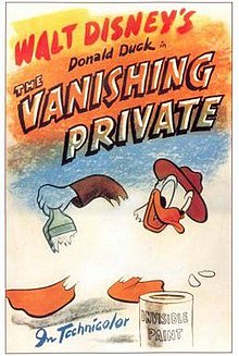 Private Donald Duck gets into trouble when he performs his camouflage painting duty too well with experimental paint that makes anything painted invisible.