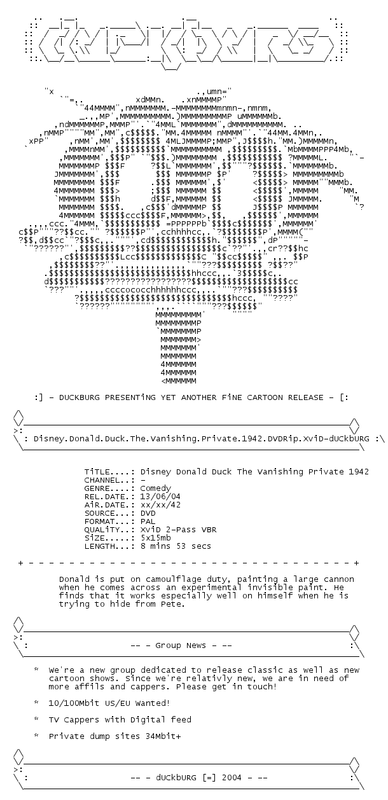 Release Name : Disney.Donald.Duck.The.Vanishing.Private.1942.DVDRip.XviD-dUCkbURG
