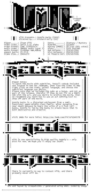 Release Name : Donnie.Darko.2001.LIMITED.DVDRip.DivX-ViTE
