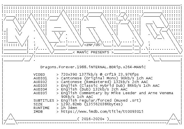 Release Name : Dragons.Forever.1988.iNTERNAL.BDRip.x264-MANiC