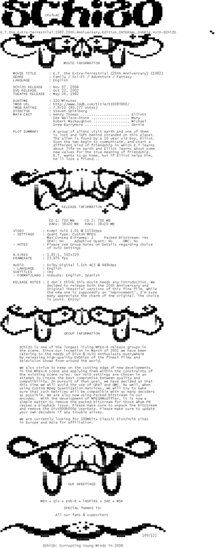 Release Name : E.T.the.Extra-Terrestrial.1982.20th.Anniversary.Edition.INTERNAL.DVDRip.XviD-SChiZO