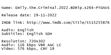 Release Name : Emily.the.Criminal.2022.BDRip.x264-PiGNUS