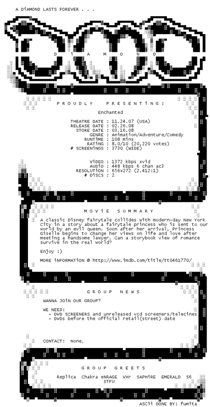 Release Name : Enchanted.2007.DVDRip.XviD-DiAMOND